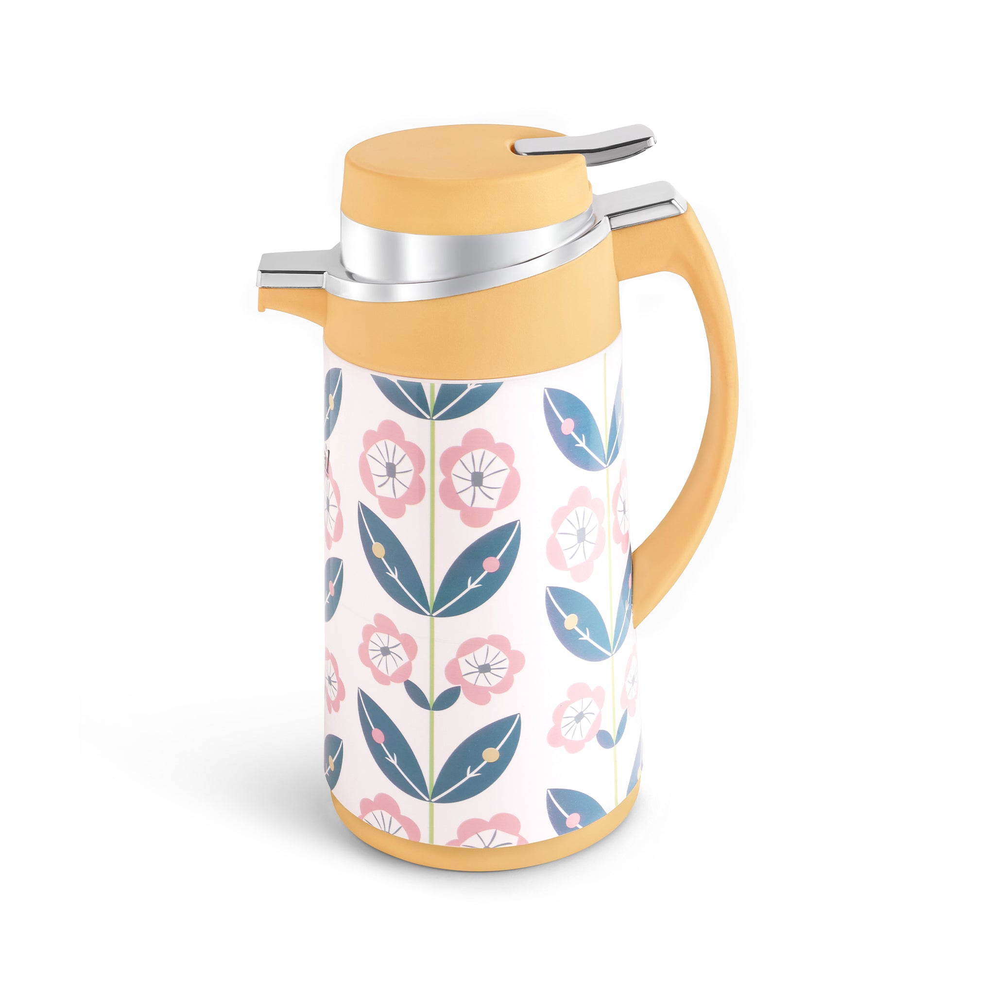 Brighten your serving moments with the Royal Novita Tea Flask – Beige Floral Edition. Featuring a cheerful beige lid and handle, this flask stands out with a lively botanical print that adds freshness to any kitchen, serving tray, or gathering. It perfectly blends vibrant style with reliable insulation.